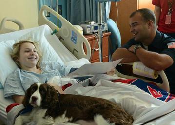 | Keywords: Le Bonheur Children's Hospital visit 141017-N-OT405-186.jpg en Hospital Corpsman 2nd Class Jonathan Vandervis assigned to the U S Navy flight demonstration squadron the Blue Angels visits a patient at Le Bonheur Children ™s Hospital along with Quinny a cocker spaniel pet therapy dog who visits patients at the hospital Members of the Blue Angels visited the hospital while in Millington Tenn for the Memphis Air Show U S Navy photo by Mass Communication Specialist Amanda Sullivan/Released 2014-10-17 Petty Officer 2nd Class Amanda Rae Sullivan https //www dvidshub net/image/1633098 141017-N-OT405-186 2014-10-28 16 57 MEMPHIS TN US PD-USGov-Military-Navy Blue Angels Images from DoD uploaded by Fæ Le Bonheur Children's Medical Center |