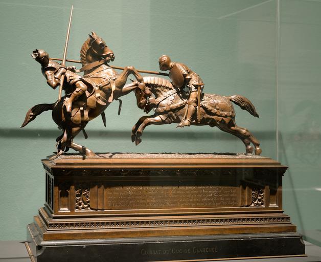 | Keywords: Le combat du duc de Clarence-Émilien de Nieuwerkerke - MBA Lyon 2014.jpeg Artwork fr Le Combat du duc de Clarence sculpture d'Émilien de Nieuwerkerke en 1839 exposé au Musée des beaux-arts de Lyon en 2014 1839 cm 60 65 5 24 bronze Institution Musée du Château de Blois François de Dijon PD-old-100 other versions Le combat du duc de Clarence-det jpg Musée des beaux-arts de Lyon - Supported by Wikimedia France Musée des Beaux-Arts de Blois Le Combat du duc de Clarence by Émilien de Nieuwerkerke L'invention du passé Histoires de cÅ“ur et d'épée en Europe 1802-1850 Taken with Nikon D610 ImageNote 1 1538 2635 2078 419 4671 3810 2 Inscription Mort de Monseigneur le duc de Clarence Frère du Roi Anglois Henri V occis au combat ou viel-Beauge par Garin de Fontaine Chevalier dans l ™ost de Monseigneur le Dauphin chronique d ™Arion et contre lui s ™adressa Messire Garin Seigneur de Fontaine un moult bon Chevalier au pays d ™Amon et de grande impétuosité porta le dict Duc de Clarence à terre qui oncques puis n ™en releva Et des Anglais y mourut force gens de bien Fut icelle déconfiture en l ™an de notre Seigneur que l ™on disoit m c c c c x x et moult fut dolente aux Anglois et gros réconfort a Monseigneur le Dauphin ¦comme le dict Duc eut entendu l ™assemblée des dicts François aulieu de Beaugé et qu ™ils se tenaient sur leur pas délibérez de le combattre il qui étoit assys au disner se leva incontinent comme tout courroucé a leur aller courir sus n ™y pensant être a heure si se mit a la voye a grant Baronie sans vouloir aucun gens de pied a faire la détrousse ainsi-comme il cuydoit mais autrement il en alla come verez l ™aborder des François fut le dict Duc Thomas le premier qui déringea de la part des Anglois ImageNoteEnd 1 |