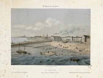 Keywords: Le Croisic - Plage des Baigneurs et Etablissement de Bains - Fonds Ancely - B315556101 A MERCEREAU 7 020.jpg Impression en 3 coul par Frick frères à Paris Fait partie d'un ensemble de recueils de lithographies de Mercereau composés de lithographies provenant de La France de nos jours vaste suite publiée par livraisons de 1853 à 1876 et comprenant 475 planches en deux tirages l'un à deux teintes noir et bistre l'autre en couleurs Les libraires ont réuni ces planches en albums de composition variable quant au nombre de planches et aux dessinateurs Asselineau Mercereau Maurice Deroy etc Un titre Les Pyrénées par Ch Mercereau; Bagnères-de-Luchon par Ch Mercereau était frappé sur le plat supérieur de la reliure de l'album ainsi que le nom du Libraire pour lequel il était réalisé La plupart des recueils de ces planches pyrénéennes portent le nom de Sajous libraire à Bagnères-de-Luchon Pl 1 à 18 numérotées de 370 à 386 Pl 374 pl 5 et 6 en double -- Pl 19 20 et 21 numérotées respectivement 407 415 et 418 Ces trois pl ont été dessinées et lithographiées par Asselineau -- Pl 22 23 et 24 numérotées 438 439 et 440 -- Pl 22 lith par Aubrun -- Pl 25 numérotée 441 -- Pl 26 à 40 numérotées de 327 à 341 -- Pl 41 à 46 numérotées de 363 à 368 -- Pl 47 numérotée 369 -- Pl 48 num 292 -- Pl 49 et 50 num 264 et 265 -- Pl 51 et 52 num 268 et 269 -- Pl 53 à 55 num de 293 à 295 -- Pl 56 num 300 -- Pl 57 à 59 num de 307 à 309 -- Pl 60 à 70 num de 316 à 326 -- Pl 71 num 63 dessin et lith d'Asselineau imprimerie Destouches -- Pl 72 et 73 num 87 et 88 dessin et lith d'Asselineau imprimerie Destouches -- Pl 74 num 124 signée Lebreton éditée chez Lalonde à Paris et imprimée chez Becquet frères à Paris -- Pl 75 num 161 dessin et litho d'Asselineau imprimerie Destouches --Pl 76 à 78 num de 207 à 209 -- Pl 79 à 81 num de 211 à 213 -- Pl 82 num 220 dessin et lith de Maurice imprimerie Destouches -- Pl 83 à 86 num de 226 à 229 -- Pl 87 et 88 num 234 et 235 -- Pl 89 à 91 num de 273 à 275 -- Pl 92 et 93 num 290 et 291 Pièces jointes 6 pl sépia dont certaines sont des doubles du recueil de Mercereau Les cinq premières planches sont numérotées respectivement 318 321 324 331 386 La dernière planche n'est pas extraite de La France de nos jours mais de L'Espagne pittoresque et monumentale Ces six planches sont signées Mercereau éditées chez Sinnet et imprimées chez Frick frères Ancely René 1876 - 1966 Possesseur fre public domain domaine public B315556101_A_MERCEREAU_7_020 jpg image/jpeg 1 f de pl lithogr ; 28 5 cm oblong Frick frères Imprimeur Sinnet F Éditeur http //numerique bibliotheque toulouse fr/collect/general/index/assoc//ark /74899/B315556101_A_MERCEREAU_7_020 dir/B315556101_A_MERCEREAU_7_020 jpg Bibliothèque municipale de Toulouse A-MERCEREAU 7-20 Creator Léon-Auguste Asselineau http //catalogues toulouse fr/web2/tramp2 exe/do_keyword_search/log_in setting_key BMT1 servers 1home query p001644 St Jean-de-Luz intérieur de l'Eglise St Jean-de-Luz le Château de l'Infante Biarritz Vue générale prise du Phare Château de Mauvesin près Bagnères-de-Bigorre Hautes Pyrénées Bagnères de Bigorre Hautes Pyrénées - Intérieur de l'Eglise des Carmes en couleurs Bagnères de Bigorre Hautes Pyrénées - Intérieur de l'Eglise des Carmes Bagnères-de-Bigorre - Eglise et couvent des Carmes Bagnères-de-Bigorre Hautes-Pyrénées - Tour des Jacobins Cascade et Pont de Magenta Vallée de l'Esponne Hautes Pyrénées Cascade de Trémes-Aïgues Vallée de Grip Hautes Pyrénées St Sauveur Hautes Pyrénées - Le Pont Napoléon Bayonne - Eglise St André Arreau et la Vallée d'Aure Hautes Pyrénées - Vue prise au dessus de la route du Col d'Aspin Auch - Vue prise sur les bords du Gers Auch - Vue de la Cathédrale Auch - Intérieur de la Cathédrale Bagnères-de-Bigorre - Vue Générale prise de la Fontaine ferrugineuse Eaux-Bonnes Basses-Pyrénées - L'établissement Thermal et la Chapelle Nantes - Vue de l'Eglise Ste Croix Le Folgoët - Vue de l'Eglise Brèche de Roland prise de Gèdres Hautes Pyrénées Chapelle du couvent de Pouëlahun i e Pouey Lahun - Vallée d'Azun Hautes Pyrénées Eglise des Templiers à Luz Le Pont de Scia - Route de Luz à Gavarnie Hautes-Pyrénées Vue de l'établissement de la Raillière près Cauterets Hautes-Pyrénées Vue générale de Cauterets prise du Mamelon Vert Hautes-Pyrénées Vue du Fort de Lourdes Hautes-Pyrénées Vue d'Argelès-de-Bigorre Hautes-Pyrénées Vue de St Sauveur Hautes-Pyrénées Le Pas de l'Echelle Route de Gavarnie Hautes-Pyrénées Fond de la Vallée d'Argelès prise de la terrasse de St Savin Hautes-Pyrénées Place Grammont à Pau Basses-Pyrénées Vue générale des Eaux-Bonnes Basses-Pyrénées Barèges et la Vallée du Bastan Hautes-Pyrénées Chute supérieure du Pont d'Espagne Hautes-Pyrénées La grotte miraculeuse à Lourdes Hautes-Pyrénées Eglise de Bétharram et Pont de Lestelle Basses Pyrénées Cascade du Cerizet Près Cauterets Hautes-Pyrénées Pic du Midi d'Ossau 2885m Basses Pyrénées - Vue prise du 3e plateau de Bious-Artigues Pau - Vue prise de la terrasse du Château Toulouse - Cloître du Musée Galerie du Moyen-Age Pau - Vue du Château prise du Parc Toulouse - Cloître du Musée et Clocher des Augustins Toulouse - La maison de pierre fragment de la façade Toulouse - Intérieur de St Sernin St Jean-de-Luz Fort du Socoa Toulouse - Vue du Capitole Bordeaux Vue de la Porte du Caillau i e Cailhau Bordeaux Porte de la grosse Cloche Bordeaux Vue des Quinconces Bordeaux - Vue de la Tour et de l'Eglise de St Michel Toulouse - Vue du Pont de pierre prise du Quai de Brienne Toulouse - Abside de l'Eglise de St Sernin de l'an 1097 Toulouse - Choeur de la Cathédrale St Etienne Rouen - Hôtel de Bourgtheroulde Biarritz - Vue des Bains Napoléon et du Casino Biarritz - Vue des Bains du Port Vieux Biarritz - Vue de l'Entrée de la Ville à l'arrivée de Bayonne Le Lac Bleu Hau