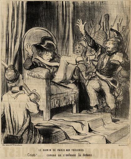 | Keywords: Le gamin de Paris aux Tuileries.jpg The kid of Paris at the Tuileries Jesus how I am sinking in this chair A poor boy is playing in an armchair Revolution 1848 1848 lithograph Institution Brown University Library object history exhibition history credit line accession number 1112123443592500 PD-old Lithographs of Paris Images of Paris from the Brown University Library Interior of the Palais des Tuileries February Revolution | ||||