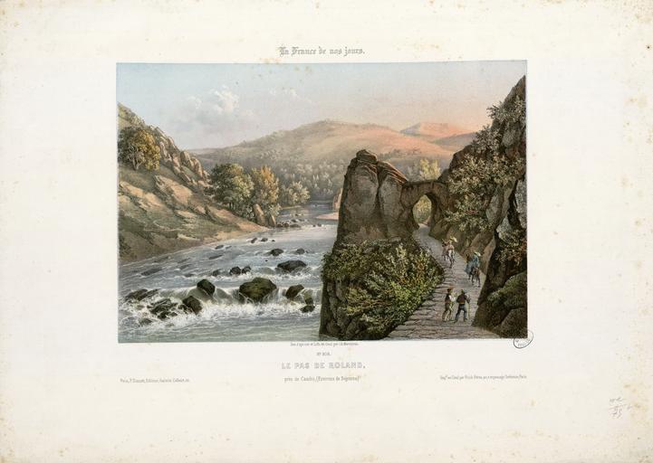 Keywords: Le Pas de Roland, près de Cambo (Environs de Bayonne) - Fonds Ancely - B315556101 A MERCEREAU 7 077.jpg Impression en 3 coul par Frick frères à Paris Fait partie d'un ensemble de recueils de lithographies de Mercereau composés de lithographies provenant de La France de nos jours vaste suite publiée par livraisons de 1853 à 1876 et comprenant 475 planches en deux tirages l'un à deux teintes noir et bistre l'autre en couleurs Les libraires ont réuni ces planches en albums de composition variable quant au nombre de planches et aux dessinateurs Asselineau Mercereau Maurice Deroy etc Un titre Les Pyrénées par Ch Mercereau; Bagnères-de-Luchon par Ch Mercereau était frappé sur le plat supérieur de la reliure de l'album ainsi que le nom du Libraire pour lequel il était réalisé La plupart des recueils de ces planches pyrénéennes portent le nom de Sajous libraire à Bagnères-de-Luchon Pl 1 à 18 numérotées de 370 à 386 Pl 374 pl 5 et 6 en double -- Pl 19 20 et 21 numérotées respectivement 407 415 et 418 Ces trois pl ont été dessinées et lithographiées par Asselineau -- Pl 22 23 et 24 numérotées 438 439 et 440 -- Pl 22 lith par Aubrun -- Pl 25 numérotée 441 -- Pl 26 à 40 numérotées de 327 à 341 -- Pl 41 à 46 numérotées de 363 à 368 -- Pl 47 numérotée 369 -- Pl 48 num 292 -- Pl 49 et 50 num 264 et 265 -- Pl 51 et 52 num 268 et 269 -- Pl 53 à 55 num de 293 à 295 -- Pl 56 num 300 -- Pl 57 à 59 num de 307 à 309 -- Pl 60 à 70 num de 316 à 326 -- Pl 71 num 63 dessin et lith d'Asselineau imprimerie Destouches -- Pl 72 et 73 num 87 et 88 dessin et lith d'Asselineau imprimerie Destouches -- Pl 74 num 124 signée Lebreton éditée chez Lalonde à Paris et imprimée chez Becquet frères à Paris -- Pl 75 num 161 dessin et litho d'Asselineau imprimerie Destouches --Pl 76 à 78 num de 207 à 209 -- Pl 79 à 81 num de 211 à 213 -- Pl 82 num 220 dessin et lith de Maurice imprimerie Destouches -- Pl 83 à 86 num de 226 à 229 -- Pl 87 et 88 num 234 et 235 -- Pl 89 à 91 num de 273 à 275 -- Pl 92 et 93 num 290 et 291 Pièces jointes 6 pl sépia dont certaines sont des doubles du recueil de Mercereau Les cinq premières planches sont numérotées respectivement 318 321 324 331 386 La dernière planche n'est pas extraite de La France de nos jours mais de L'Espagne pittoresque et monumentale Ces six planches sont signées Mercereau éditées chez Sinnet et imprimées chez Frick frères Ancely René 1876 - 1966 Possesseur fre public domain domaine public B315556101_A_MERCEREAU_7_077 jpg image/jpeg 1 f de pl lithogr ; 32 cm oblong Sinnet F Éditeur Frick frères Imprimeur http //numerique bibliotheque toulouse fr/collect/general/index/assoc//ark /74899/B315556101_A_MERCEREAU_7_077 dir/B315556101_A_MERCEREAU_7_077 jpg Bibliothèque municipale de Toulouse A-MERCEREAU 7-77 Creator Charles Mercereau http //catalogues toulouse fr/web2/tramp2 exe/do_keyword_search/log_in setting_key BMT1 servers 1home query p001701 St Jean-de-Luz intérieur de l'Eglise St Jean-de-Luz le Château de l'Infante Biarritz Vue générale prise du Phare Château de Mauvesin près Bagnères-de-Bigorre Hautes Pyrénées Bagnères de Bigorre Hautes Pyrénées - Intérieur de l'Eglise des Carmes en couleurs Bagnères de Bigorre Hautes Pyrénées - Intérieur de l'Eglise des Carmes Bagnères-de-Bigorre - Eglise et couvent des Carmes Bagnères-de-Bigorre Hautes-Pyrénées - Tour des Jacobins Cascade et Pont de Magenta Vallée de l'Esponne Hautes Pyrénées Cascade de Trémes-Aïgues Vallée de Grip Hautes Pyrénées St Sauveur Hautes Pyrénées - Le Pont Napoléon Bayonne - Eglise St André Arreau et la Vallée d'Aure Hautes Pyrénées - Vue prise au dessus de la route du Col d'Aspin Auch - Vue prise sur les bords du Gers Auch - Vue de la Cathédrale Auch - Intérieur de la Cathédrale Bagnères-de-Bigorre - Vue Générale prise de la Fontaine ferrugineuse Eaux-Bonnes Basses-Pyrénées - L'établissement Thermal et la Chapelle Nantes - Vue de l'Eglise Ste Croix Le Croisic - Plage des Baigneurs et Etablissement de Bains Le Folgoët - Vue de l'Eglise Brèche de Roland prise de Gèdres Hautes Pyrénées Eglise des Templiers à Luz Chapelle du couvent de Pouëlahun i e Pouey Lahun - Vallée d'Azun Hautes Pyrénées Le Pont de Scia - Route de Luz à Gavarnie Hautes-Pyrénées Vue de l'établissement de la Raillière près Cauterets Hautes-Pyrénées Vue générale de Cauterets prise du Mamelon Vert Hautes-Pyrénées Vue du Fort de Lourdes Hautes-Pyrénées Vue d'Argelès-de-Bigorre Hautes-Pyrénées Vue de St Sauveur Hautes-Pyrénées Le Pas de l'Echelle Route de Gavarnie Hautes-Pyrénées Fond de la Vallée d'Argelès prise de la terrasse de St Savin Hautes-Pyrénées Place Grammont à Pau Basses-Pyrénées Vue générale des Eaux-Bonnes Basses-Pyrénées Barèges et la Vallée du Bastan Hautes-Pyrénées Chute supérieure du Pont d'Espagne Hautes-Pyrénées La grotte miraculeuse à Lourdes Hautes-Pyrénées Eglise de Bétharram et Pont de Lestelle Basses Pyrénées Cascade du Cerizet Près Cauterets Hautes-Pyrénées Pic du Midi d'Ossau 2885m Basses Pyrénées - Vue prise du 3e plateau de Bious-Artigues Toulouse - Cloître du Musée et Clocher des Augustins Pau - Vue prise de la terrasse du Château Pau - Vue du Château prise du Parc Toulouse - Cloître du Musée Galerie du Moyen-Age Toulouse - La maison de pierre fragment de la façade Toulouse - Intérieur de St Sernin St Jean-de-Luz Fort du Socoa Toulouse - Vue du Capitole Bordeaux Vue de la Porte du Caillau i e Cailhau Bordeaux Porte de la grosse Cloche Bordeaux Vue des Quinconces Bordeaux - Vue de la Tour et de l'Eglise de St Michel Toulouse - Vue du Pont de pierre prise du Quai de Brienne Toulouse - Abside de l'Eglise de St Sernin de l'an 1097 Toulouse - Choeur de la Cathédrale St Etienne Rouen - Hôtel de Bourgtheroulde Biarritz - Vue des Bains Napoléon et du Casino Biarritz - Vue des Bains du Port Vieux Biarritz - Vue de l'Entrée de la 