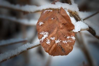 Keywords: leaf leaves dry branch alone snowy winter snow nature silent rest close