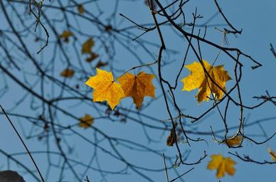 Keywords: leaf maple sunlight fall autumn branches branch nature maple leaf orange gold sky blue colored tree