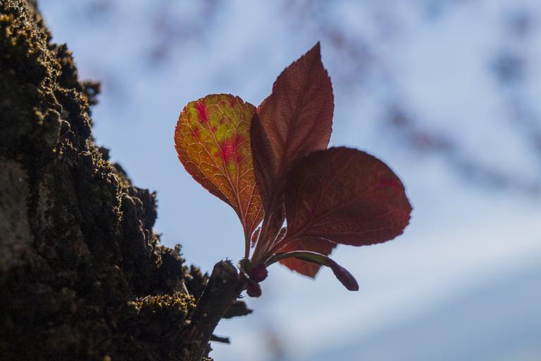 Keywords: leaf tree green red spring summer autumn leaf veins back light sky branch nature botany flora