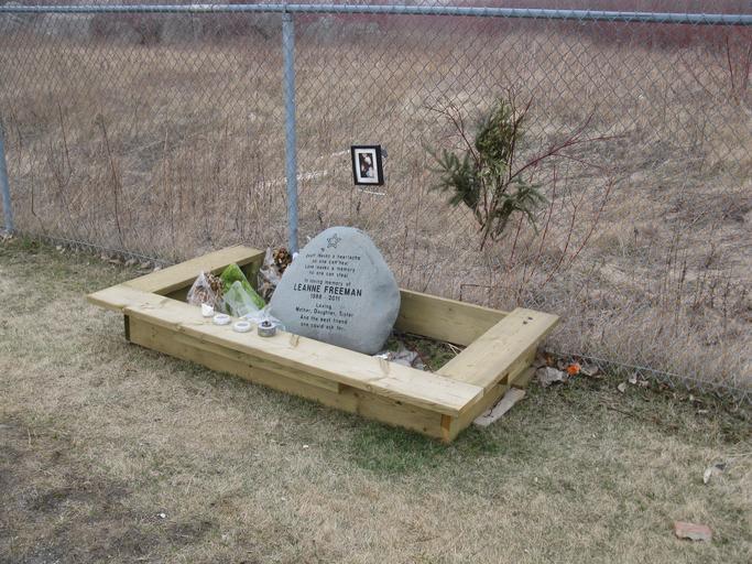 MAKE A MEME View Large Image Leanne Freeman monument on Unwin Avenue, 2012-03-17 -a.jpg Leanne Freeman was a 23 year old woman of no fixed address whose body was found mortally wounded at 1 am 2011-11-29 on isolated Unwin Avenue She was declared DOA at the hospital ...