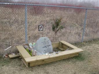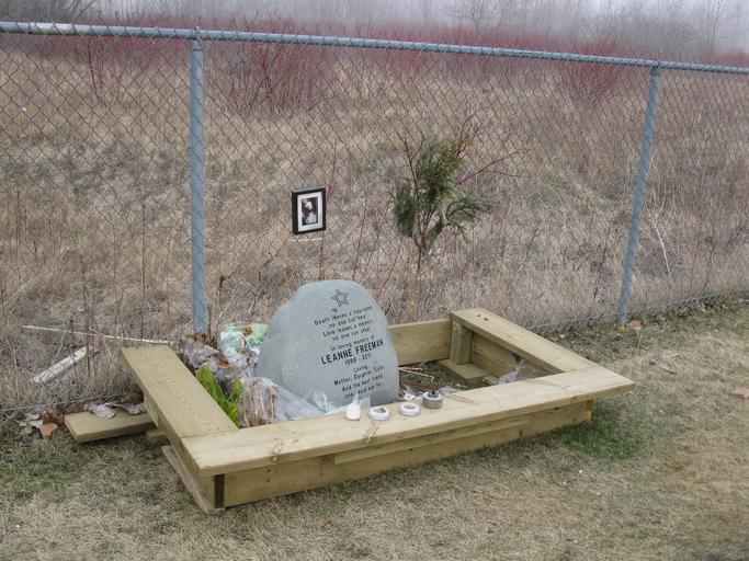 Keywords: Leanne Freeman monument on Unwin Avenue, 2012-03-17 -b.jpg Leanne Freeman was a 23 year old woman of no fixed address whose body was found mortally wounded at 1 am 2011-11-29 on isolated Unwin Avenue She was declared DOA at the hospital where medical staff determined she died not in a traffic accident but by a gunshot wound to the head Police believed she was shot elsewhere On 2011-12-10 her clothes and belongings were found in a dumpster in Scarboro Police captured two suspects on 2011-12-16 and 2011-12-17 The Toronto Star started a trust fund after many of its readers were moved by her savage death and her families inability to pay to bury her On January 8 2012 a monument to Freeman was erected at the site her body was found on Unwin Avenue own 2012-03-17 Geo Swan <span class signature-talk >talk</span> Leanne Freeman monument