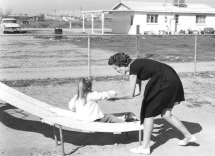 Keywords: arizona mennoniteboardofmissions voluntaryservice leanne yoder leanneyoder kindergarten blackandwhite monochrome outdoor black and white Caption: Leanne Yoder from the Surprise, Arizona Mennonite Voluntary Service Unit on the kindergarten playground. 1966. Citation: Mennonite Board of Missions Photograph Collection. Mission to Surprise, Arizona, 1962-1968. IV-10-7.2 Box 1 Folder 57, Photo #11. Mennonite Church USA Archives - Goshen. Goshen, Indiana Caption: Leanne Yoder from the Surprise, Arizona Mennonite Voluntary Service Unit on the kindergarten playground. 1966. Citation: Mennonite Board of Missions Photograph Collection. Mission to Surprise, Arizona, 1962-1968. IV-10-7.2 Box 1 Folder 57, Photo #11. Mennonite Church USA Archives - Goshen. Goshen, Indiana |