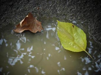Keywords: leaves autumn autumn leaves nature rainwater peaceful sunset