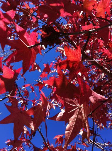 Keywords: leaves autumn red australia nature sky blue sun warm morning trees light colorful beautiful bright happy