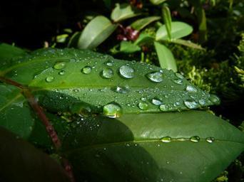 Keywords: leaves dew drops macro garden morning nature spring light contrast foliage