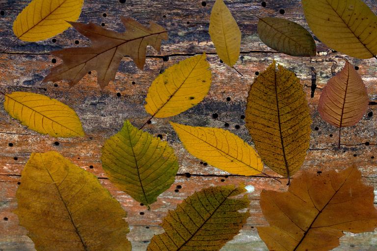 Keywords: leaves tree leaves autumn fall leaves composition arrangement wooden structure