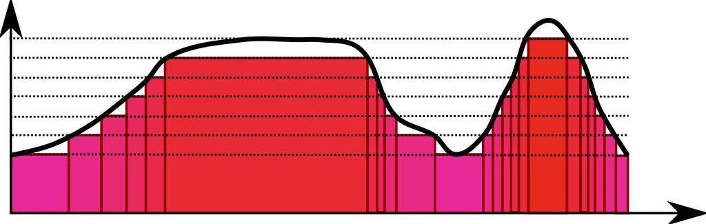 Keywords: Lebesgueintegralsimplefunctions.svg en Cropped lower image showing approximation of a function by simple functions 2012-03-23 http //commons wikimedia org/wiki/File Riemannvslebesgue svg User Svebert cc-zero Uploaded with UploadWizard Integral calculus |