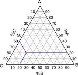 Keywords: Lecture diagramme ternaire.svg en How to read a ternary diagram fr Comment lire un diagramme ternaire own Cdang 2009-06-09 Created with Inkscape Ternary phase diagrams