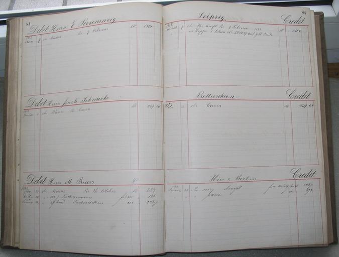 Keywords: Ledger of the fur trader Dedo from Leipzig, 1876-1885 084.jpg Hauptbuch des Leipziger Rauchwarenhändlers Dedo 1986-1975 083 085 Herrn E Rosenzweig Leipzig Herrn Isack Schwartz Bottuschan Botoșani in Rumänien Herrn M Brass Hier Berlin Collection Kuhn 2010-12-29 14 58 57 Dedo <gallery>Ledger of the fur trader Dedo from Leipzig 1876-1885 084 Ausschnitt Brass jpg</gallery> PD-old Ledger of the fur trader Dedo in Leipzig 1876-1885 Furriers and fur traders of Leipzig named in the accountancy of Naoum Dedo in Leipzig Rosenzweig E Furriers in Botoșani Schwartz Isack Fur wholesale dealers in Berlin Brass M Fox fur-skins Emil Brass |