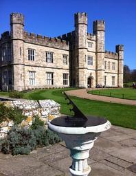 | Keywords: Leeds frontage sundial.jpg en Leeds Castle Maidstone Kent Tudor revival front built in 1823 for Wykeham Martins In the foreground is a modern commemorative sundial inscribed Belvoir Virginia own Wedgers 2011-04-09 Cc-zero Gardens and parks of castles in England Disk-shaped horizontal sundials Leeds Castle Metal sundials Sundials in gardens Sundials in Kent |