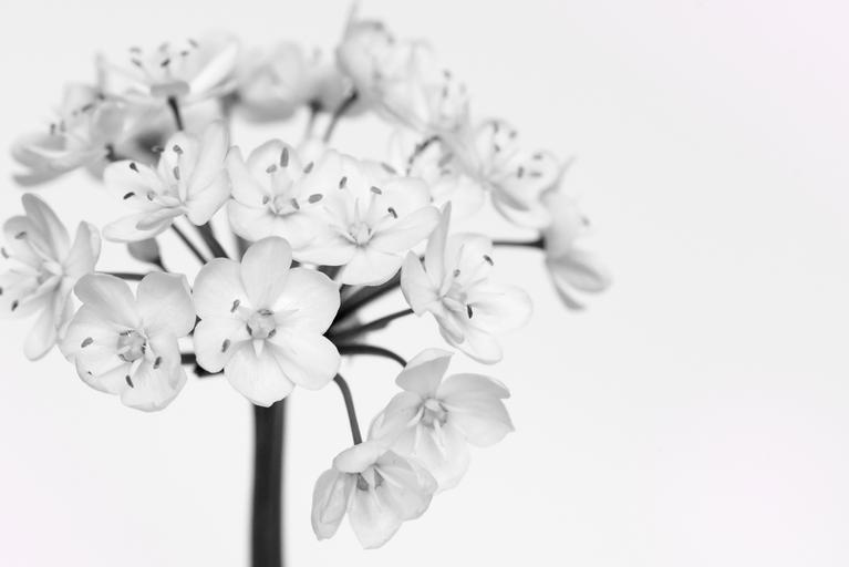 Keywords: leek blossoms white white flowers flower black and white recording close