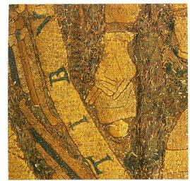 Keywords: Left hand of Christ on the coronation pall.jpg author 1031 textile embroidery Institution Hungarian National Museum Budapest object history credit line accession number own scanned by Szilas from A magyar Szent Korona by Tóth Endre Szelényi Károly Kossuth 2000 Budapest PD-old-100 Coronation pall of Hungary |