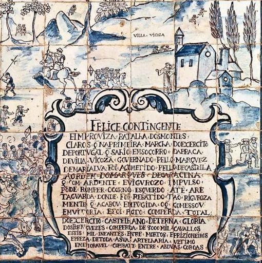Keywords: Legenda da Batalha de Montes Claros, 1665.jpg 1670 azulejo Palácio dos Marqueses de Fronteira object history exhibition history credit line Rui carita 17 de janeiro de 2013 accession number 52512 PD-old-100-1923 1670 Files of Lisbon uploaded by Darwinius Azulejo panel of Montes Claros battle at Palácio dos Marqueses de Fronteira Vila Viçosa |