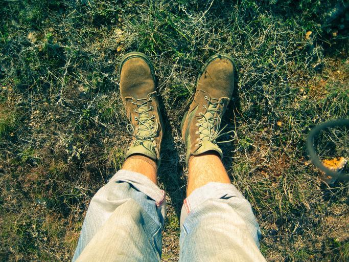 Keywords: legs hiking shoes grass land pants shoelace man autumn boots day ground human nature november outdoors walking walk
