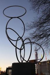 Keywords: Lekande ringar Globen 2012.jpg sv Lekande ringar av Leo Janis Brieditis utanför Johanneshovs isstadion Rest 1968 own Jssfrk 2012-03-25 FoP-Sweden Sculptures in Enskede-Årsta-Vantör Hovet Globentorget Leo Janis-Brieditis