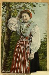 Keywords: Leksandkvinna, 1911.jpg From the U S Library of Congress http //memory loc gov/master/rbc/rbcmil/scrp7009302/001 jpg ITEM TITLE Postcard labeled Leksand shows Swedish woman in traditional folk costume CREATED/PUBLISHED Stockholm Sweden June 1911 NOTES Verso manuscript note from M G P probably Mary Gray Peck thanks Anne Fitzhugh Miller for farewell note and Votes for Women ribbon from New York City suffrage parade; reports Carrie Chapman Catt being well-received and invited to have audience with King of Norway PD-old-70-1923 Leksand Municipality Carrie Chapman Catt Traditional costumes of Dalarna