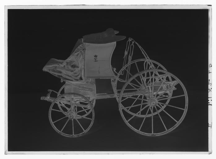 Keywords: Lekvagn, "high flyer phaeton", för prinsessan Lovisa - Livrustkammaren - 61312-negative.tif Öppen lekvagn för barn av faeton-typ med ensitsig korg över främre hjulaxeln Förvaringslåda under korgen och även i sitsen Vagnen är blåmålad med gula och svarta ränder Vagnskorgen är ensitsig med röd djuphäftad ripsklädsel och lös sittdyna På fotbrädan finns en blommig matta Korgens tvärsnitt är fyrkantigt nedre hörnen utsvängda På sidorna i guld med rött målat L under kronprinskrona Sidoväggarnas främre delar har två gångjärn kan öppnas bakåt <br/><br/>Fjädrar under korgen fram baktill längre remmar fästade vid S-fjädrar från bakvagnen Över bakre axeln sitter en läderklädd lakejbräda Större bakhjul med 14 ekrar 7 lötar Framhjul med 10 ekrar 4 lötar Vridbar framaxel En mittbom som är gaffelformad baktill original caption decade 1850 wood Färg röd material trä - steel - leather size mm 1350 800 880 LRK Louise av Sverige drottning av Danmark Brödrafolkens väl 2005 place of origin original filename LN_B11007_013887 52180 inventory number LRK 15613 61312 CC0 Lekvagn high flyer phaeton för prinsessan Lovisa - Livrustkammaren - 61312 tif <gallery caption Different images of same object > File Lekvagn high flyer phaeton för prinsessan Lovisa - Livrustkammaren - 52751 tif File Barnvagn faetong vänster sida - Livrustkammaren - 31036 tif File Barnvagn faetong snett framifrån - Livrustkammaren - 48154 tif File Barnvagn faetong höger sida - Livrustkammaren - 39596 tif File Barnvagn faetong framifrån - Livrustkammaren - 65276 tif File Barnvagn faetong bakifrån - Livrustkammaren - 73838 tif File Barnvagn faetong snett framifrån m överdragsskydd - Livrustkammaren - 56715 tif </gallery> |