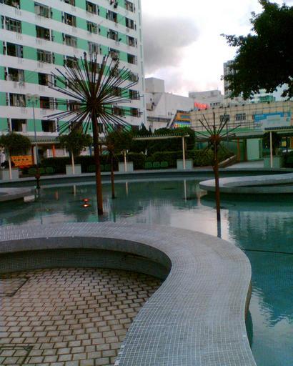 Keywords: LekYuenEst Garden.jpg 源邨經典噴水池 own Self took photo 2006-07-01 Chong Fat zh Chinese Wikipedia Chong Fat Use Photoshop Elements to adjust colors Lek Yuen Estate Pools in Hong Kong