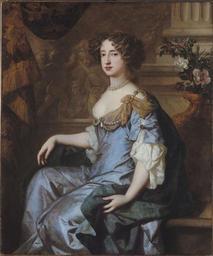 Keywords: Lely Queen Mary II.jpg Artwork Creator Peter Lely langswitch A copy one of several of Lely's portrait of Queen Mary II of England in the British Royal Collection In the Royal Collection copy and in the one in the National Portrait Gallery London she wears an orange dress but in this one the dress is blue In another copy the dress is grey or lilac The present copy could be from the studio of Lely or it could be autograph or a combination of both c 1677-1680 Oil on canvas in 48 25 40 Collection of James Stunt James Stunt other versions <gallery>Queen Mary II jpg 1662 Mary II jpg</gallery> PD-old-100 Original upload log en wikipedia Lely+Queen+Mary+II jpg 2011-10-31 10 37 Kerkyra22 2500×3015× 1492783 bytes <nowiki> Queen Mary II of England Collection of James stunt ~~~~~ Sir Peter Lely James stunt N/A ~~~~</nowiki> Female portraits by Peter Lely Collection of James Stunt 17th-century portrait paintings in private collections 1677c Mary II of England 1677c 1670s portrait paintings F 17th-century oil portraits of sitting women at three-quarter length 1677c Columns in portrait paintings 1677c Drapery in portrait paintings 1677c Females with blue satin dresses in art 1677c Females with clothing with pearls in art 1677c Females with pearl necklaces in art 1677c |