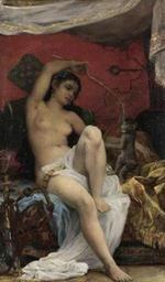 | Keywords: Lematte, Jacques Francois Fernand - Odalisque playing with a Monkey - 19th century.jpg Artwork creator Fernand Lematte Odalisque playing with a Monkey 19th century oil canvas 49 x 29 5 cm / 19 29 x 11 61 Gallery Location Signed lower right http //www askart com/AskART/photos/SOP20061019_5183/3 jpg Other versions cropped PD-old-auto-1923 1929 Fernand Lematte 19th-century oil on canvas paintings Oil paintings of women Paintings of women with animals Odalisques Location of museum or gallery missing 19th-century paintings not categorised by year Female toplessness in paintings Nude women in bed in art Playing animals in art Playing in art People with monkeys in art Nude or partially nude women facing right and looking right in art Uploads by Mattes from external sources |