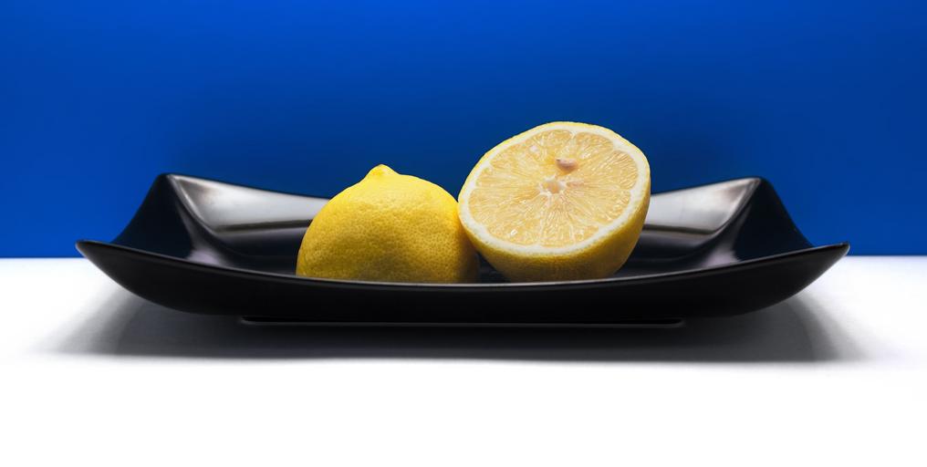 Keywords: lemon fruit black plate blue background fresh citrus
