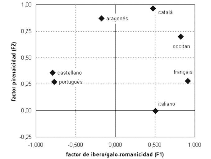 Keywords: LenguasRomances-ACP.png en Principal Component Analysis based on shared vocabulary for some romance languages First factor is related to diferences between ibero-romance and gallo-romance second factor show correlation with Pyrenaic area 2012-02 own Davius cc-zero Romance languages Uploaded with UploadWizard |