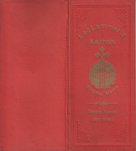| Keywords: Leo Lammertz Aachen, sewing-needles, sample card (1 a).jpg Nähnadel-Musterkarte der Firma Leo Lammertz Aachen Der Einband 9 x 20 cm Leinen mit Blind- und mit Goldprägung Leo Lammertz Aachen Eingetr Marke Beste Nadel der Welt Ursprüglich zwei mal fünf Musternadeln enthaltend Runde Hercules-Oerter ohne Angel; Nadelheftchen-Etikett Warenzeichen; Art 284; Runde Hercules Oerter Fabrikat Leo Lammertz 250 Stück No Art 284 Runde Hercules-Oerter; Nadelheftchen-Etikett Warenzeichen; Art 284; Runde Hercules Oerter Fabrikat Leo Lammertz 250 Stück No Art 285 Own possession Erhalten von der Firma Pelz-Orlob Düsseldorf 2011-05-16 Kürschner <span class signature-talk >talk</span> 10 43 16 May 2011 UTC PD-old PD-textlogo Kürschner <gallery> File Leo_Lammertz_Aachen _sewing-needles _sample_card_ 1_b jpg File Leo_Lammertz_Aachen _sewing-needles _sample_card_ 1_c jpg </gallery> Sewing machine needles Furrier's collection Kuhn Fur sewing machines Needlemakers Products of Aachen Pelz-Orlob Leo Lammertz |