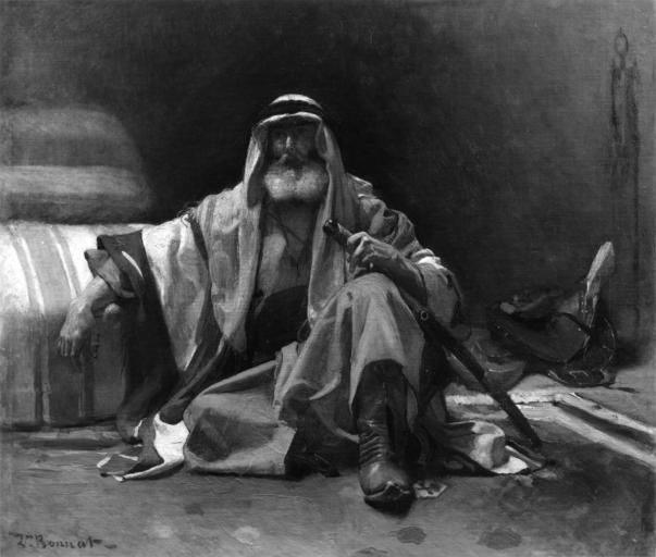 Keywords: Léon Bonnat - An Arab Sheik - Walters 37173 (2).jpg In 1868-69 Bonnat accompanied Jean-Léon Gérôme on a tour of Egypt and the Holy Land During the trip he made a number of sketches which he used as the basis for paintings after he returned to Paris Bonnat was an influential teacher at the École des Beaux-Arts in Paris and included among his pupils Henri de Toulouse-Lautrec and Thomas Eakins ca 1870 Oil on canvas cm 65 72 5 ; Framed cm 94 106 7 10 2 accession number 37 173 25856 Mary J Morgan date and mode of acquisition unknown Mrs Mary J Morgan Collection Sale New York March 3-8 1886 no 152 William T Walters city Baltimore Lucas's letter to Walters dated 12/12/84 claims purchase date was 1885 Henry Walters city Baltimore Walters Art Museum Henry Walters Acquired by William T Walters 1886 Signature At lower left Ln Bonnat; Number On old labels removed from the stretcher when canvas was relined in 1963 17 679 13 366 Orientalism The Near East in French Painting 1800-1880 Memorial Art Gallery of the University of Rochester Rochester; Neuberger Museum Purchase 1982 Orientalism Delacroix to Klee Art Gallery of New South Wales Sydney; Auckland Art Gallery Auckland 1997-1998 place of origin Paris France <gallery> File Léon Bonnat - An Arab Sheik - Walters 37173 jpg </gallery> PD-old-auto 1922 Léon Joseph Florentin Bonnat Media contributed by the Walters Art Museum needs category review French paintings in the Walters Art Museum Bedouins in Egypt |