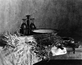 Keywords: Léon Bonvin - Still Life with Cruets and Vegetables - Walters 371646.jpg cm 16 5 21 3 accession number 37 1646 16413 William T Walters Baltimore date and mode of acquisition unknown Henry Walters city Baltimore Walters Art Museum Henry Walters Acquired by William T Walters Signature and date In ink lower right Léon Bonvin 1863; Number In graphite center verso D4 and 3; Number In graphite lower left verso 9; Mark In graphite upper left verso X; Mark In red pencil upper right verso X The Essence of Line A Baltimorean in Paris George A Lucas 1860-1909 The Walters Art Gallery Baltimore 1979 The Drawings and Watercolors of Léon Bonvin The Cleveland Museum of Art Cleveland; The Walters Art Gallery Baltimore 1980-1981 The Realist Tradition French Painting and Drawing 1830-1900 Brooklyn Museum Brooklyn; The Cleveland Museum of Art Cleveland; Saint Louis Art Museum St Louis; Glasgow Art Gallery and Museum Glasgow 1980-1982 place of origin France Walters Art Museum license 2D The Essence of Line Paintings by Léon Bonvin in the Walters Art Museum Media contributed by the Walters Art Museum needs category review |