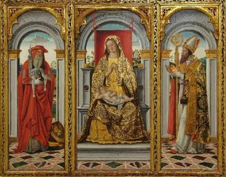 Keywords: Leonardo boldrini - Vergine tra San Girolamo e SantAgostino - Museo Correr Venezia.jpg it LEONARDO BOLDRINI Vergine in trono con Agostino e san Gerolamo 1490 circa Venezia Museo Correr Procuratie Nuove 2016-05-16 http //www cassiciaco it/navigazione/iconografia/pittori/quattrocento/boldrini/boldrini html Creator Leonardo Boldrini other versions PD-Art Paintings in the Museo Correr Leonardo Boldrini |