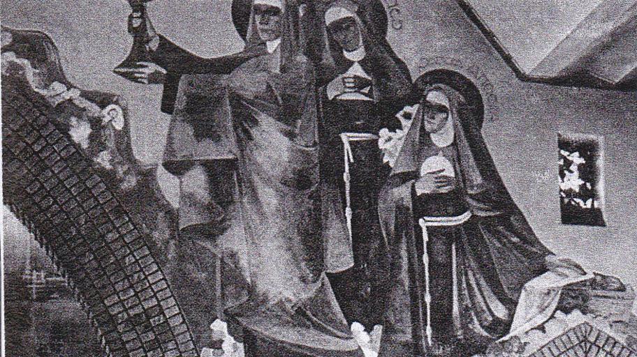 | Keywords: LeonardusLeiden10.jpg en Images of Saint Clara Saint Agnes Angela of Mericia in the Leonardus Church Haagweg Leiden The Netherlands Mural paintings by Humbert Randag plastered over in 2004 Photograph 4 June 1944 1931 Henk Buis Gedenkboek Leonarduskerk Leiden 1925-2003 Leiden 2010 Humbert Randag PD-old-70 Uploaded with UploadWizard Murals in South Holland Leonarduskerk Leiden Photographs uploaded by User Vysotsky | ||||