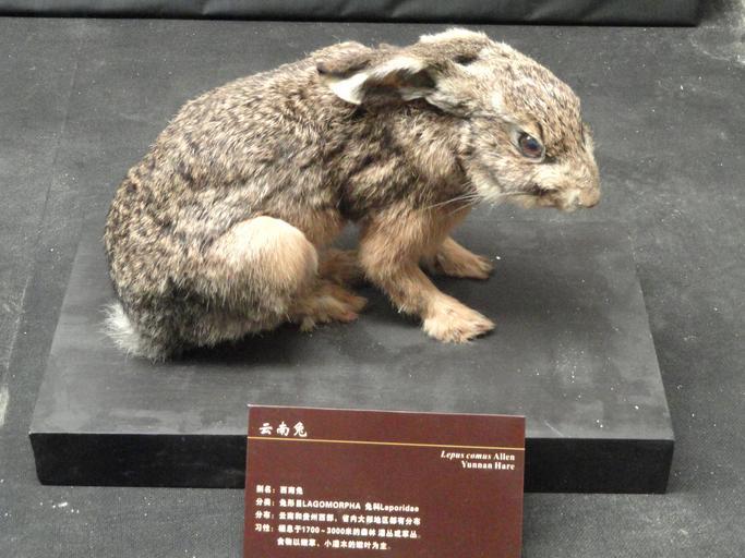 Keywords: Lepus comus - Google Search - Kunming Natural History Museum of Zoology - DSC02457.JPG Taxidermy exhibit in the Kunming Natural History Museum of Zoology 昆明动物博物馆 Kunming Yunnan China I took this photograph 2011-08-10 02 55 13 Daderot Public domain Taxidermy in the Kunming Natural History Museum of Zoology Lepus comus |