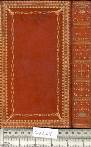 Keywords: Les Aventures de Telemaque, fils d'Ulysse - Lower cover (c42c9).jpg Style Panel design; Caption Lower cover; Colour Red; Edge Gilt exhibition history Decorative Technique Tooled in gold; Cover Material Goatskin includes morocco turkey etc Signed Binder's ticket Smooth spine tooled in gold Printed on vellum part of a 4 volume set Doublures and endleaves of light blue watered silk Macchi states; last quarter century Nicolas-Denis was born on 1 October 1731 and succeeded his father in 1760 He was the most expensive binder of his time but a skilfull craftsman He was always in demand and had to be helped by other binders which explains the differening quality of his bindings He adopted the à la dentelle decoration He introduced on his covers the celebrated fer à l'oiseau bird motif for which he became famous but which he did not invent Derome le jeune and his family signed with different tickets R Devauchelle La reliure p 139; P Ract-Madoux Essai de classement chronologique p 382-389 S de Ricci French signed bindings p 91-91 n 45 p 120-121 n 60 p 126-127 n 63 p 128-131 n 64 object history Text 1784; Paris; Unspecified object type Cc-zero place of creation Binding France place of discovery Pascal Ract-Madoux Essai de classement chronologique des étiquettes de Derome le Jeune 1989; Les Derome Jacques-Antoine Charles Nicolas et Nicolas-Denis 100 reliures dont 9 en mosaïque exhibition Bibliothèque nationale 1990 British Library image http //www bl uk/catalogues/bookbindings/LargeImage aspx RecordId 020-000000600 ImageId ImageId 39905 Copyright BL Les Aventures de Telemaque fils d'Ulysse Uploaded with GWToolset Les Aventures de Telemaque fils d'Ulysse - Lower cover c42c9 http //www webarchive org uk/bldatasets/bindings/4404_3 jpg Bookbinding 18th-century bookbinding British Library Bookbindings |