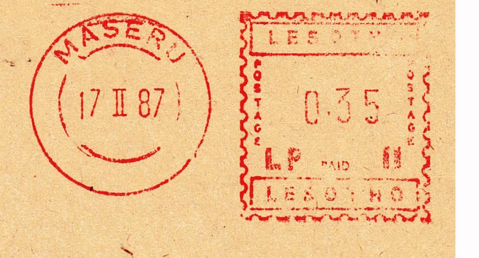 Keywords: Lesotho stamp type BA3point1.jpg en Meter stamp catalog image Lesotho type BA3 1 Frank Sutera Rick Stambaugh 2015-01-20 Meter stamps of Lesotho