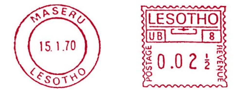 Keywords: Lesotho stamp type BB1.jpg en Meter stamp catalog image Lesotho type BB1 Richard Stambaugh Richard Stambaugh 2011-11-13 Meter stamps of Lesotho