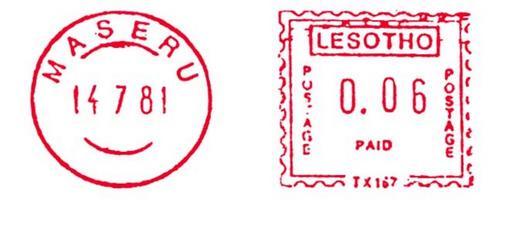 Keywords: Lesotho stamp type BB4.jpg en Meter stamp catalog image Lesotho type BB4 Richard Stambaugh Richard Stambaugh 2011-11-13 Meter stamps of Lesotho