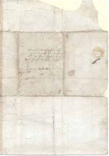 Keywords: university of victoria universityofvictoria uvic manuscripts, medieval manuscriptsmedieval monochrome texture Letter of Thomas Jermy to William Paston (d. 1610), 37 lines in English plus signature, with address and note of sender. Creasing and wear patterns suggest entire sheet was previously folded quite small with address on the outside. Letter and address are in one hand (Thomas Jermy's); note on sender ("Jarmes laste lettre") is possibly in William Paston's hand; initials and date notation of eighteenth-century Norfolk antiquarian Francis Blomefield are at foot of letter. Paper is somewhat stained and damaged, especially along fold lines, but damage has been stabilized by repairs, including grafted modern paper, notwithstanding minor text loss at lower right corner. Letter of Thomas Jermy to William Paston (d. 1610), 37 lines in English plus signature, with address and note of sender. Creasing and wear patterns suggest entire sheet was previously folded quite small with address on the outside. Letter and address are in one hand (Thomas Jermy's); note on sender ("Jarmes laste lettre") is possibly in William Paston's hand; initials and date notation of eighteenth-century Norfolk antiquarian Francis Blomefield are at foot of letter. Paper is somewhat stained and damaged, especially along fold lines, but damage has been stabilized by repairs, including grafted modern paper, notwithstanding minor text loss at lower right corner. |