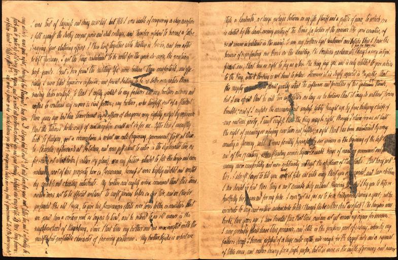 | Keywords: LetterOvBismarckToMCKing1846page2.jpg Page 2 of a personal letter written by the later German Chancellor Otto von Bismarck addressed to his fellow member of Corps Hannovera Göttingen Mitchell C King of Charleston South Carolina and Flat Rock North Carolina written in 1846 Scan of the letter in the Library of Congress Washington DC 1846 Creator Otto von Bismarck First published in 1966 by Mullen/Rogge in Historische Zeitschrift Vol 202 1966 pp 352-362 PD-old-100 Otto von Bismarck in 1846 Bismarcks correspondence with Mitchell Campbell King Autographs of Otto von Bismarck Corps Hannovera Göttingen Library of Congress Manuscript Division |