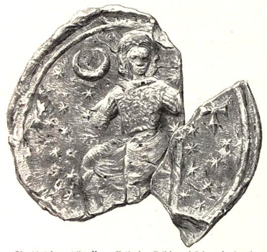 | Keywords: Lev II Yuriiovych seal.png uk Печатка галицько-волинського князя Льва ІІ Ю ійовича 1316 ік Лица одягнений у кольчугу що сягає пояса ад п авим аменом лица я півмісяць а над лівим х ест Поле всіяне зі ками П остежуються сліди д евка і віст я списа який лица т имав в лівій уці Die österreichisch-ungarische Monarchie in Wort und Bild Wien 1898 A Levytsky 1898 Seals of Kingdom of Halych-Volhynia Lev II of Galicia Cross of Saint Clemens in heraldry PD-old-70-1923 | ||||
