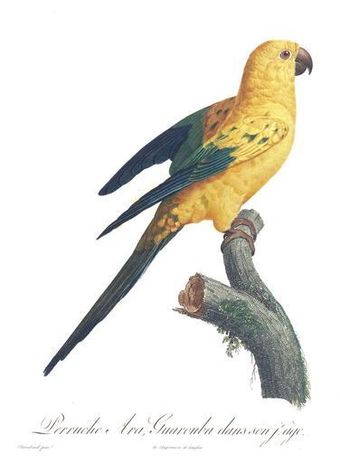 | Keywords: Levaillant Parrot 20.jpg Sun Parakeet or Sun Conure Aratinga solstitialis Perruche Ara Guarouba dans son jeune age https //archive org/stream/mobot31753003742951 page/20/mode/1up Histoire naturelle des perroquets Volume 1 by Francois Levaillant 1801 creator Jacques Barraband pd-old-100 Histoire naturelle des perroquets Aratinga solstitialis |