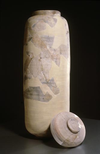 Keywords: Levantine - Jar and Cover for Manuscript Rolls - Walters 482058 - Side A.jpg Between 1948 and 1956 about 80 intact manuscript rolls and more than 20 000 fragments were discovered in eleven caves at Qumran near the Dead Sea Known as the Dead Sea Scrolls they preserve parts of every book of the Hebrew Bible Old Testament except for Esther and represent the earliest existing Hebrew versions Jars such as this one also found in a cave near Qumran were used frequently by the ancient Jews to store manuscript rolls of parchment papyrus and copper ca 1st century BC terracotta cm 72 24 4 h x diam accession number 48 2058 29930 Government of Jordan Walters Art Museum 1952 by purchase through the Palestine Archaeological Museum at Jerusalem Museum purchase 1952 In Search of Ancient Treasure 40 Years of Collecting The Walters Art Gallery Baltimore 1978 place of origin Cain Feshkha in present-day Israel Walters Art Museum license Ancient Near East art in the Walters Art Museum Ancient Levant art Dead Sea Scrolls pots Media contributed by the Walters Art Museum needs category review |