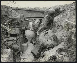 Keywords: eerste wereldoorlog loopgraven uitkijkposten uitrusten armistice day armisticeday eerste wereldoorlog eerstewereldoorlog first world war firstworldwar world war i worldwari woi Beschrijving: 40 Years Since The End of World War I: WAS THEIR JUBILATION JUSTIFIED? Life in a superior-type trench, somewhere on the Western Front. While one man keeps watch against surprise attack, his comrades - lying in grotesque attitudes - catch a few moments much-needed sleep. Many trenches were merely holes unprotected by any form of support, and barely high enough for a man to crouch in, let alone stand upright! 40 jaar geleden eindigde de Eerste Wereldoorlog. Was hun gejubel gerechtvaardigd? De foto toont het leven in een superieur type loopgraaf ergens aan het westelijk front. Terwijl één man op de uitkijk staat om te waken voor een verrassingsaanval, pakken zijn kameraden, in groteske houdingen liggend, een beetje broodnodige slaap mee. Veel loopgraven waren enkel gaten die door geen enkele vorm van ondersteuning beveiligd waren, en nauwelijks hoog genoeg voor een man om in te hurken, laat staan recht op te staan! De foto is verspreid in november 1958, 40 jaar na de wapenstilstand Datum: 1914-1918 Bestanddeelnummer: 2.24.09_18_158-1404 Fotocollectie: Eerste Wereldoorlog Voor meer informatie over het Nationaal Archief: www.nationaalarchief.nl Voor meer foto's uit deze en andere collecties, bezoek onze Beeldbank: beeldbank.nationaalarchief.nl/ U kunt ons helpen onze kennis van de fotocollecties te verrijken door tags en commentaren toe te voegen. Herkent u mensen of locaties of heeft u een bijzonder verhaal te vertellen bij één van de foto’s, laat dan een reactie achter (als u ingelogd bent bij Flickr) of stuur een mailtje naar: flickrthecommons@nationaalarchief.nl! Beschrijving: 40 Years Since The End of World War I: WAS THEIR JUBILATION JUSTIFIED? Life in a superior-type trench, somewhere on the Western Front. While one man keeps watch against surprise attack, his comrades - lying in grotesque attitudes - catch a few moments much-needed sleep. Many trenches were merely holes unprotected by any form of support, and barely high enough for a man to crouch in, let alone stand upright! 40 jaar geleden eindigde de Eerste Wereldoorlog. Was hun gejubel gerechtvaardigd? De foto toont het leven in een superieur type loopgraaf ergens aan het westelijk front. Terwijl één man op de uitkijk staat om te waken voor een verrassingsaanval, pakken zijn kameraden, in groteske houdingen liggend, een beetje broodnodige slaap mee. Veel loopgraven waren enkel gaten die door geen enkele vorm van ondersteuning beveiligd waren, en nauwelijks hoog genoeg voor een man om in te hurken, laat staan recht op te staan! De foto is verspreid in november 1958, 40 jaar na de wapenstilstand Datum: 1914-1918 Bestanddeelnummer: 2.24.09_18_158-1404 Fotocollectie: Eerste Wereldoorlog Voor meer informatie over het Nationaal Archief: www.nationaalarchief.nl Voor meer foto's uit deze en andere collecties, bezoek onze Beeldbank: beeldbank.nationaalarchief.nl/ U kunt ons helpen onze kennis van de fotocollecties te verrijken door tags en commentaren toe te voegen. Herkent u mensen of locaties of heeft u een bijzonder verhaal te vertellen bij één van de foto’s, laat dan een reactie achter (als u ingelogd bent bij Flickr) of stuur een mailtje naar: flickrthecommons@nationaalarchief.nl! |