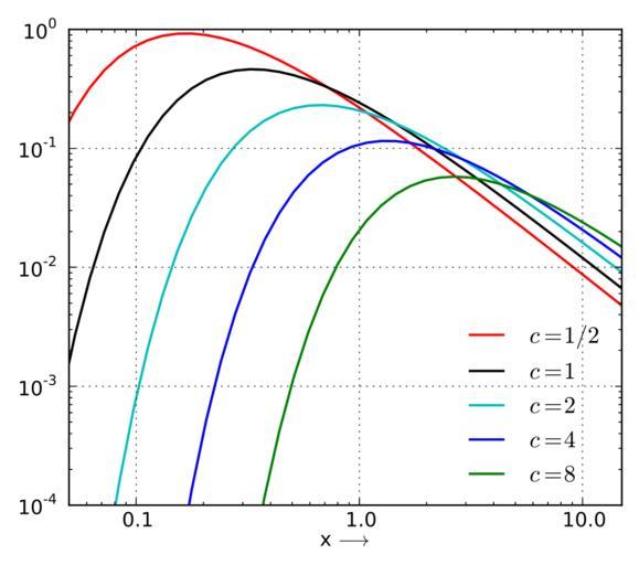 Keywords: Levy0 LdistributionPDF.svg python using numpy and matplotlib libraries 2011-09-25 own Krishnavedala validSVG Source Code <syntaxhighlight lang python > from numpy import from matplotlib pyplot import from mpl_toolkits axes_grid axislines import SubplotZero pdf lambda c mu x sqrt c/ 2 pi exp -0 5 c / x-mu / x-mu 1 5 fig figure figsize 6 5 ax SubplotZero fig 111 fig add_subplot ax ax grid True ax minorticks_on x logspace -1 6 1 6 ax loglog x pdf 5 0 x c 'r' lw 1 5 label r' c 1/2 ' ' c 1\ /_2 ' ax loglog x pdf 1 0 x c 'k' lw 1 5 label r' c 1 ' ax loglog x pdf 2 0 x c 'c' lw 1 5 label r' c 2 ' ax loglog x pdf 4 0 x c 'b' lw 1 5 label r' c 4 ' ax loglog x pdf 8 0 x c 'g' lw 1 5 label r' c 8 ' ax set_ylim 1e-4 1 ax set_xlim 0 05 15 ax legend loc 4 frameon False ax set_xticks 0 1 1 0 10 ax set_xticklabels r'0 1' r'1 0' r'10 0' ax set_xlabel r'x -\ \rightarrow ' fig savefig Levy0_LdistributionPDF svg bbox_inches tight pad_inches 15 </syntaxhighlight> cob cc-zero Uploaded with UploadWizard Lévy distribution Created with Matplotlib Images with Python source code |
