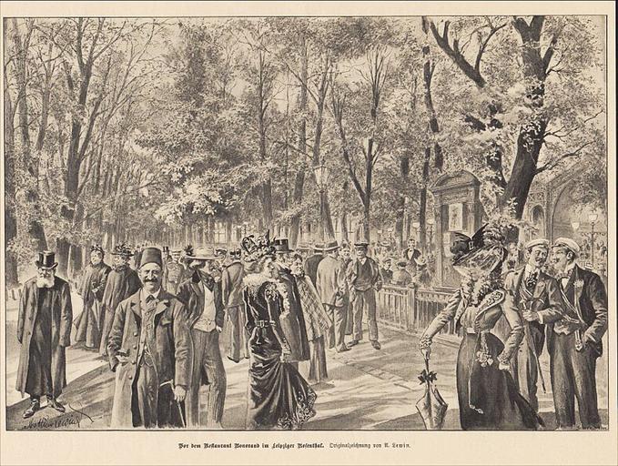Keywords: Lewin Bonorand.jpg de Vor dem Bonorand im Leipziger Rosental http //www ebay de/itm/1901-Arthur-Lewin-Restaurant-Bonorand-Leipzig-Rostental-grosser-Druck-/170694194227 ebay abgerufen 09 02 2012 Arthur Lewin 1860-1923 1901 Rosental Leipzig Cafés in Leipzig PD-Art |