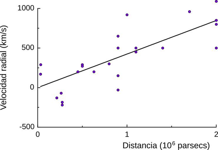 Keywords: Ley de Hubble (datos de 1929).svg es Ajuste lineal de la relación distancia-velocidad ley de Hubble Se representan las 24 galaxias que Hubble utilizó en http //dx doi org/10 1073/pnas 15 3 168 su publicación original de 1929 concretamente las que aparecen en la Tabla 1 El movimiento del Sol no se ha sustraído de los datos como sí hizo Hubble en la Figura 1 del trabajo mencionado anteriormente own Karshan 04-01-2010 Cosmology |